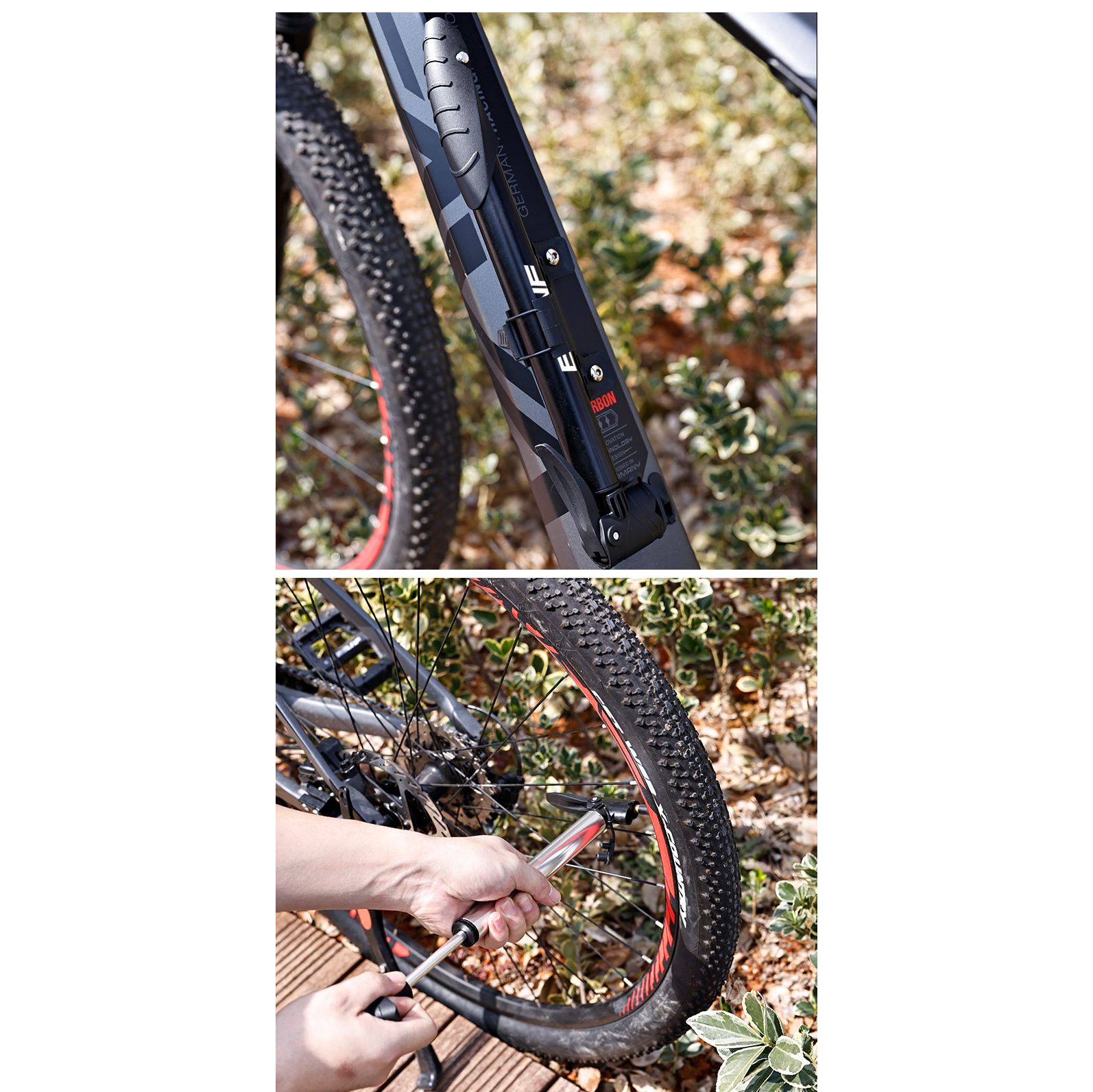 - Thân bơm hợp kim nhôm trọng lượng nhẹ - Tay cầm gấp gọn lại được theo dạng chữ T - Hỗ trợ cả van Schrader (van Mỹ) và Presta (van Pháp) - Cho phép
