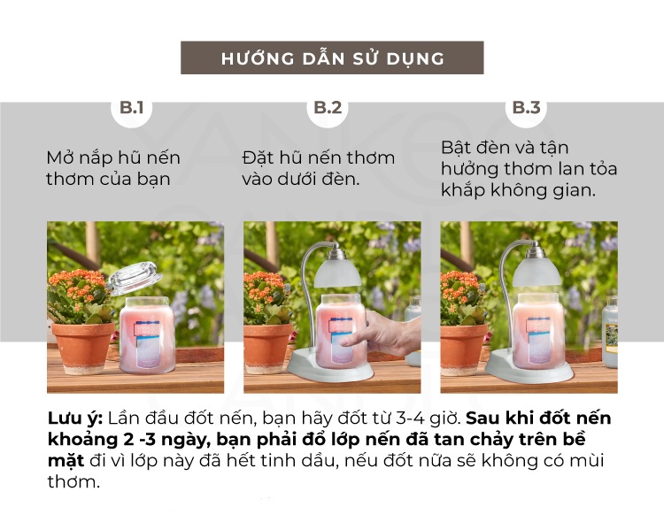Đèn đốt nến sử dụng nhiệt tỏa ra từ bóng đèn để làm tan chảy lớp sáp nến, tạo ra hương thơm lan tỏa khắp ngôi nhà.