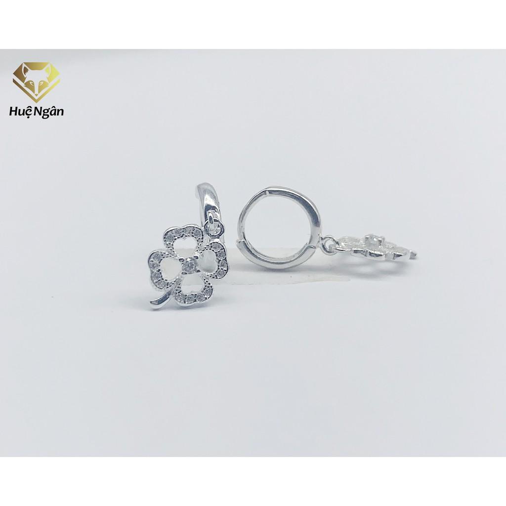 Khuyên tai bạc 925 cao cấp Cỏ 4 lá may mắn đính đá tinh tế
