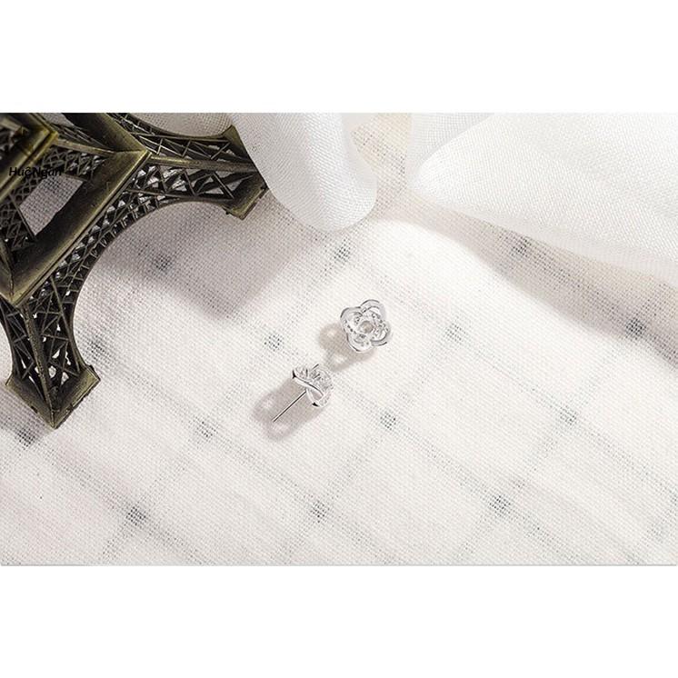 Khuyên tai bạc 925 cao cấp Cỏ 4 lá may mắn đính đá tinh tế