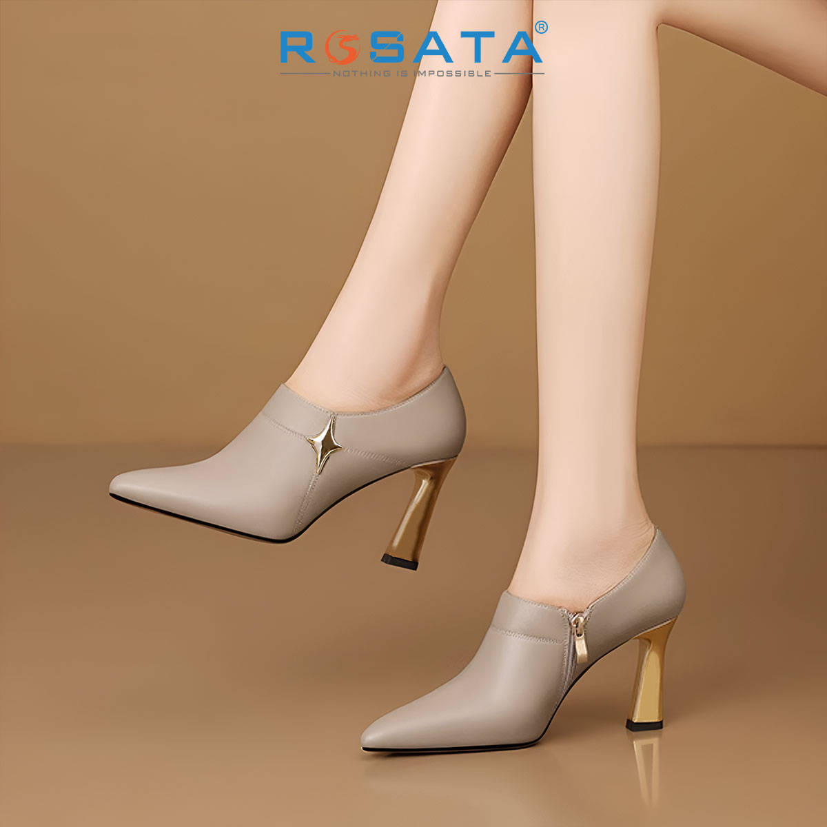 ROSATA - thương hiệu giày thời trang nữ cao cấp THUẦN VIỆT NHƯNG CHẤT LƯỢNG QUỐC TẾ ------------------ Giày bốt nữ cổ thấp gót cao 8p RO607 ROSATA tại BCASHOP màu đen thiết kê đơn