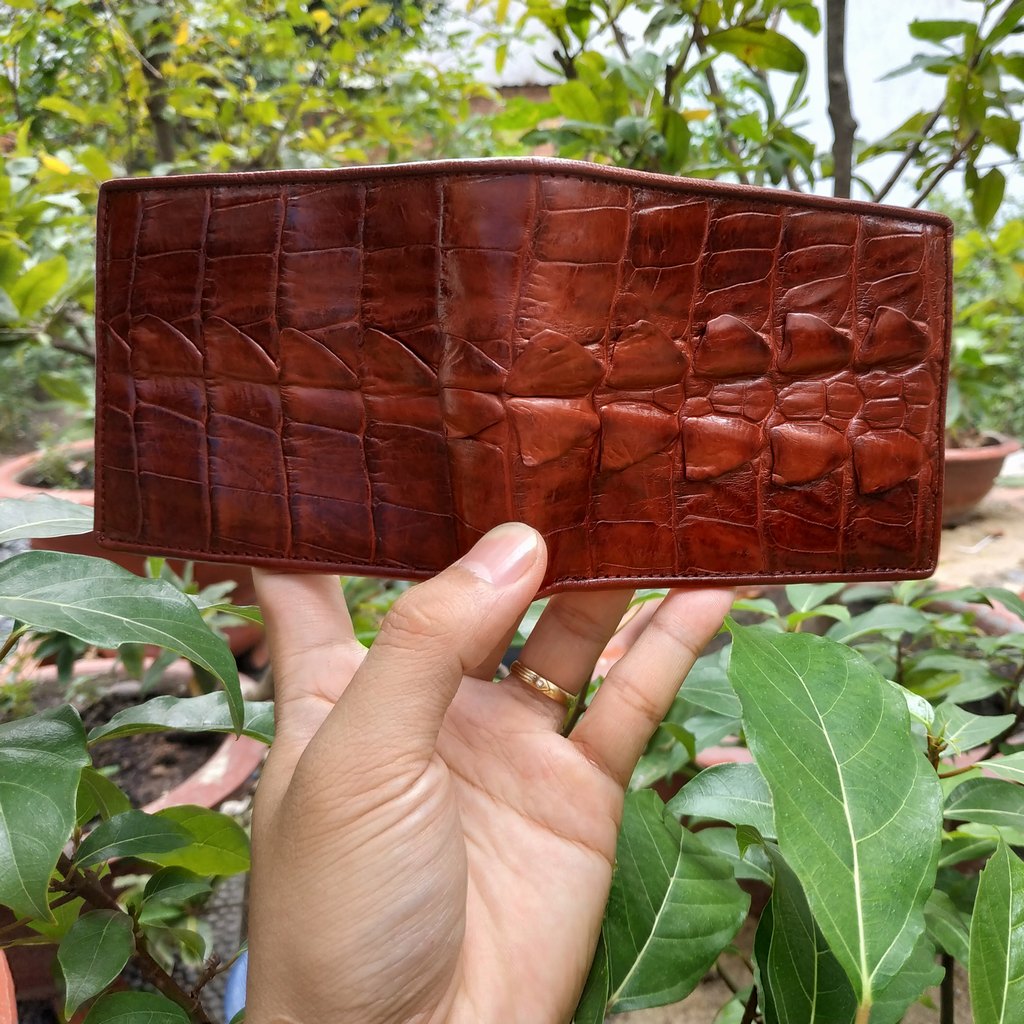 ✨Bóp Da Cá Sấu. Vây Đuôi Cá Sấu Lớn Rất Bền! Thiết Kế Dáng Ngang Cổ Điển Dễ Sử Dụng