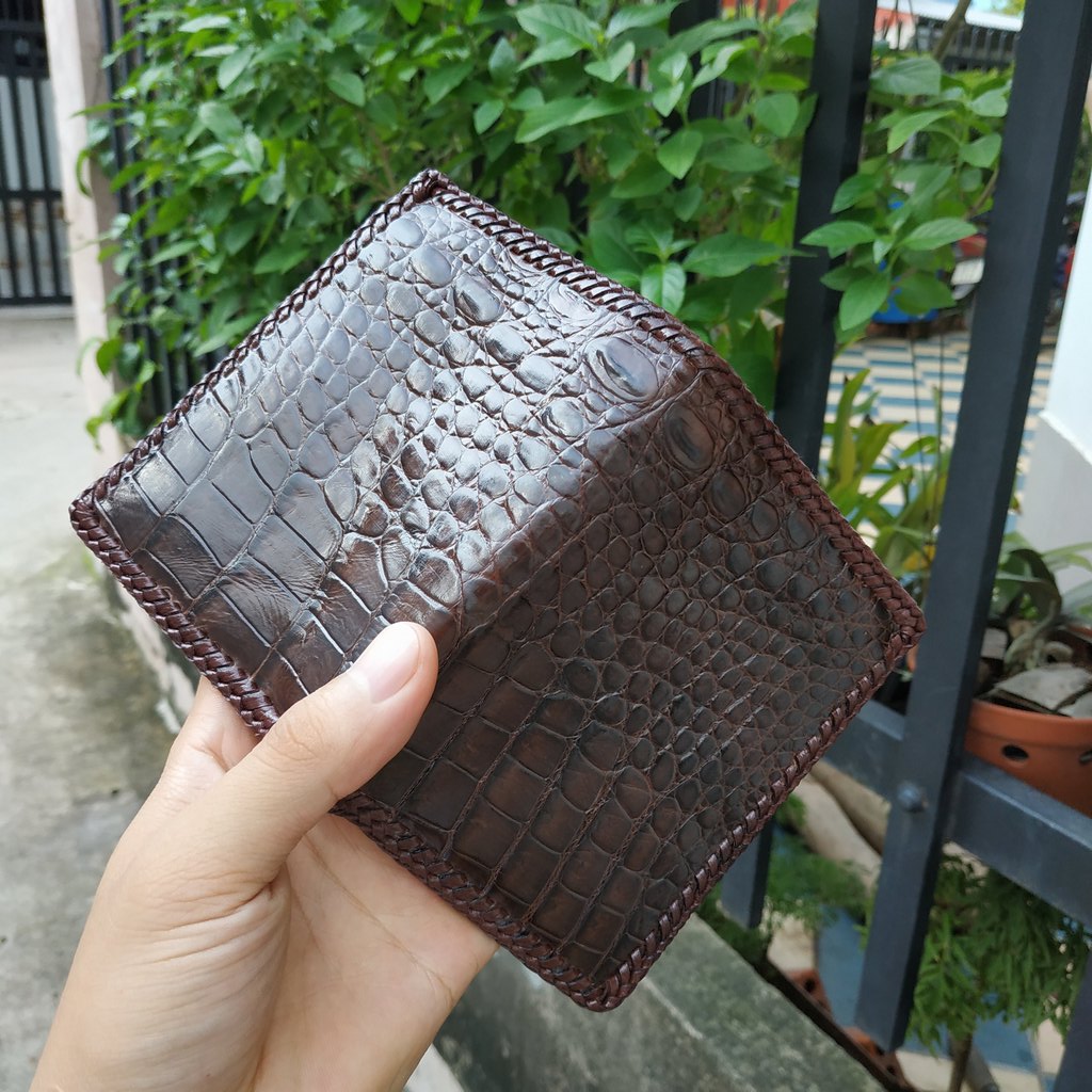 Ví Da Cá Sấu Thái Lan 2 Mặt Đan Viền Thủ Công #vidacasau #vida #bopdacasau