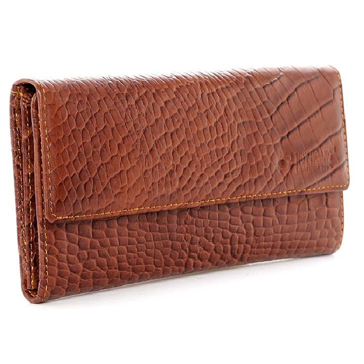 Ví/Bóp nữ da bò Huy Hoàng vân cá sấu lớn 3 gấp màu nâu đỏ 3169