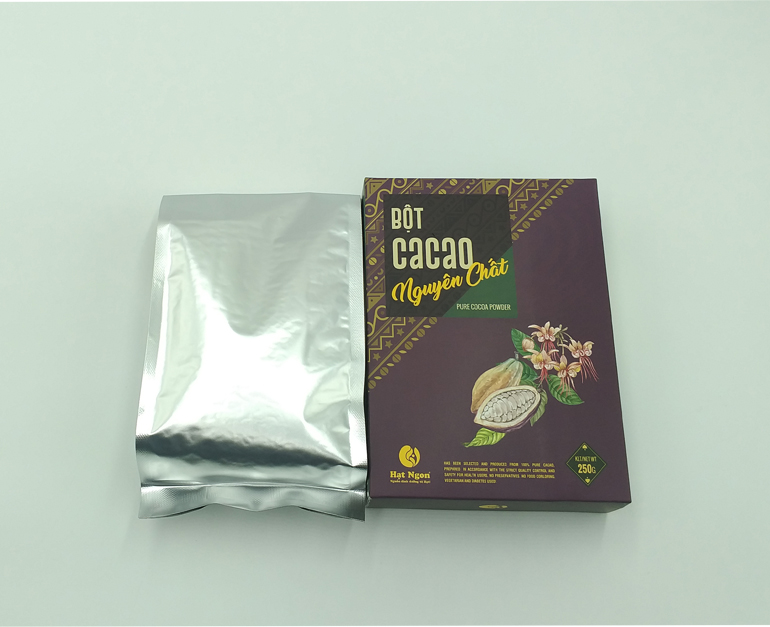 Sản phẩm từ cacao: bột cacao nguyên chất (250g,500g) bơ cacao, hộp cacao sữa dừa và cacao cà phê