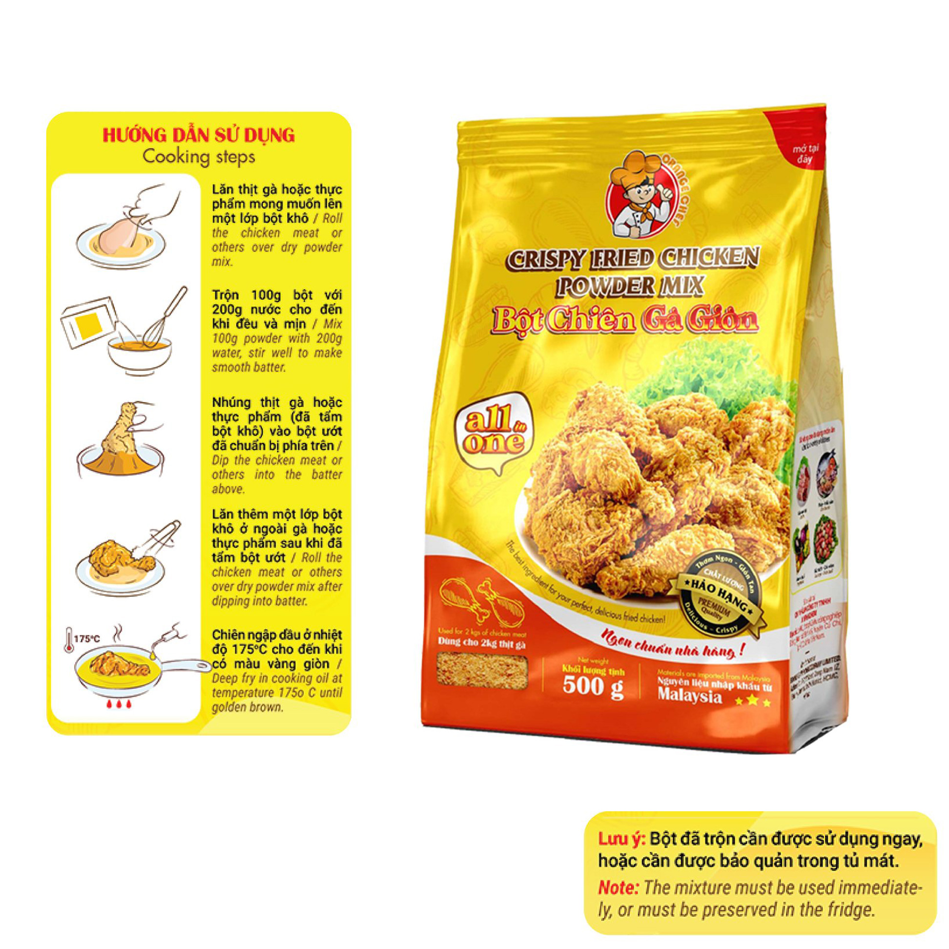 Bột chiên gà giòn All in One với nguyên liệu bột thượng hạng nhập khẩu từ Malaysia cho món gà rán giữ nguyên gia vị mang mùi hương tự nhiên giúp giữ trọn vẹn hương