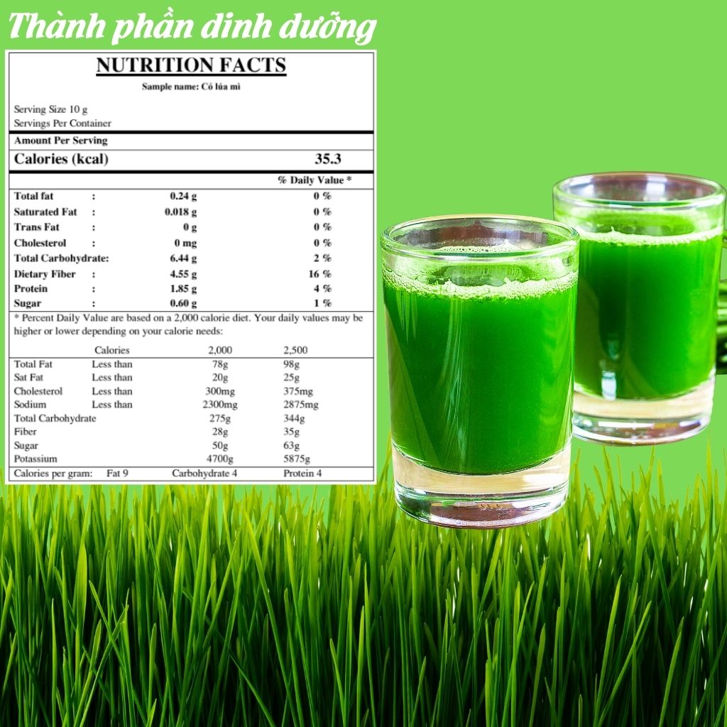 • Dinh dưỡng trong cỏ lúa mì rất dễ bị phá hủy khi nhiệt độ trên 75oC nên khi cho vào cháo/mỳ/phở, làm nguội xuống dưới 75oC rồi mới cho bột rau vào trộn đều
