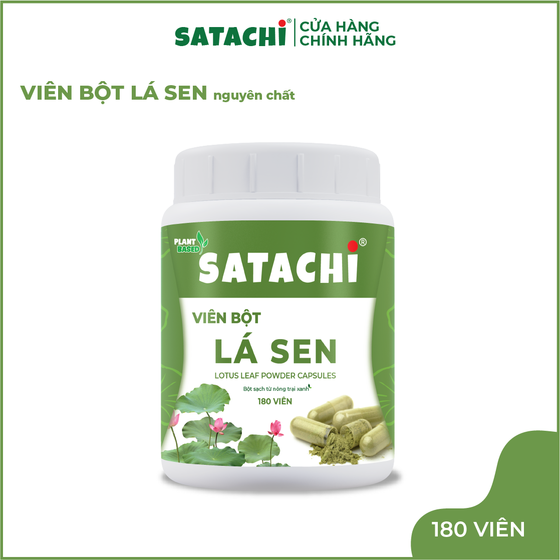 Viên Bột Lá Sen Nguyên Chất SATACHI – 100% Lá Sen – Dạng Viên Tiện Lợi – Hộp 180 viên Viên Bột Lá Sen Satachi được sản xuất từ 100% lá sen nguyên chất, áp