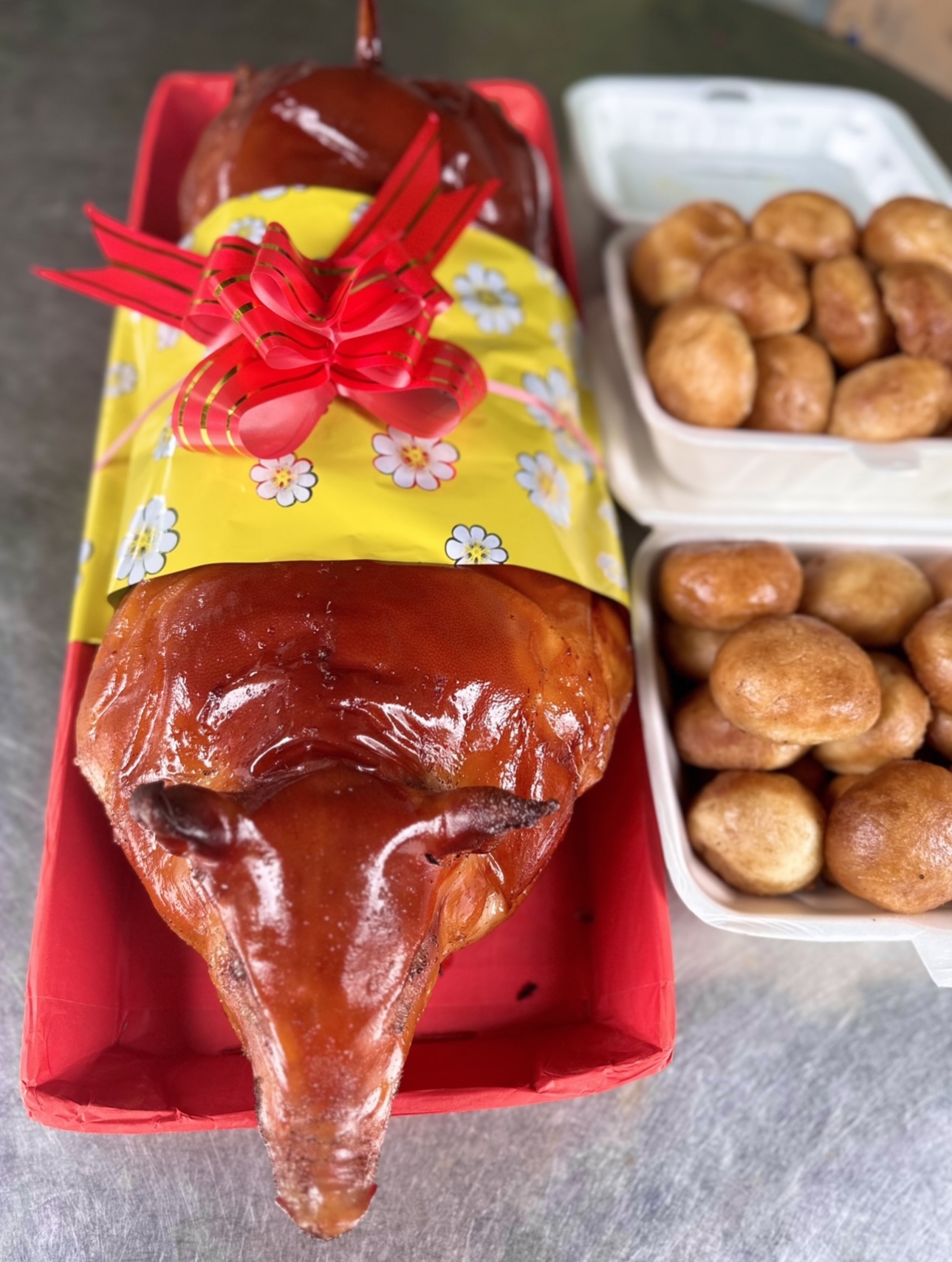 ombo quay nướng đầy đủ gia vị, không cần nêm thêm. Gồm có : Muối nổ bì giòn da cốm Gia vị trộn sẵn ướp phần thịt Giấm (Dấm) đa dụng tạo màu đẹp ,da