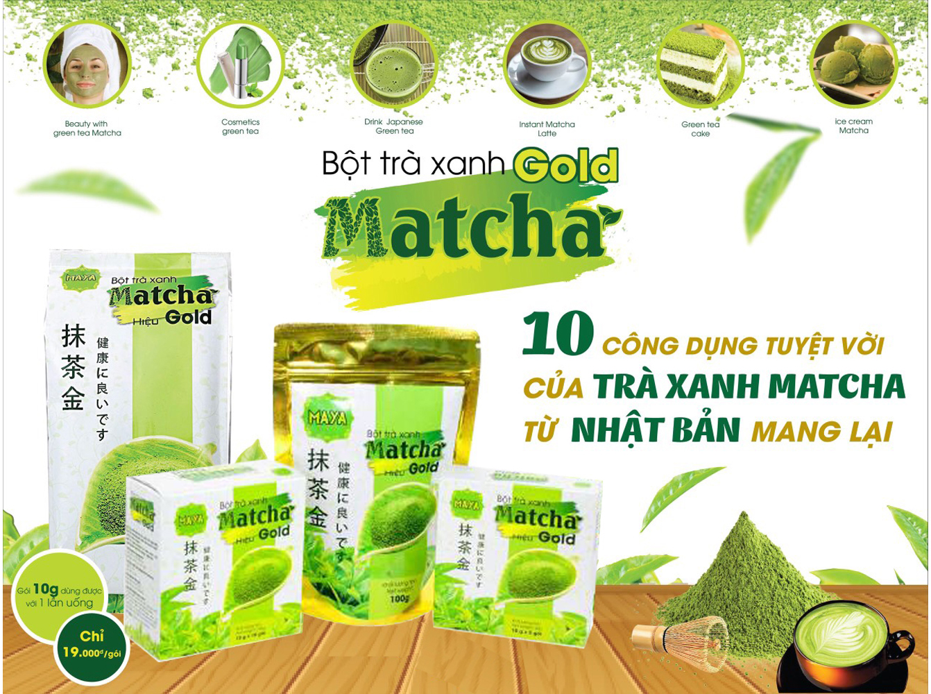 ✨Bột Trà Xanh Matcha Hiệu Gold Cocoa Indochine (Hộp 10 Gói x 10g)