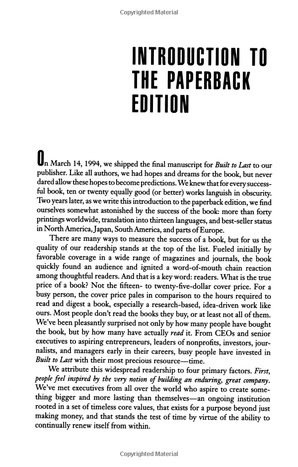 "This is not a book about charismatic visionary leaders. It is not about visionary product concepts or visionary products or visionary market insights. Nor is it about just having a corporate vision. This is a