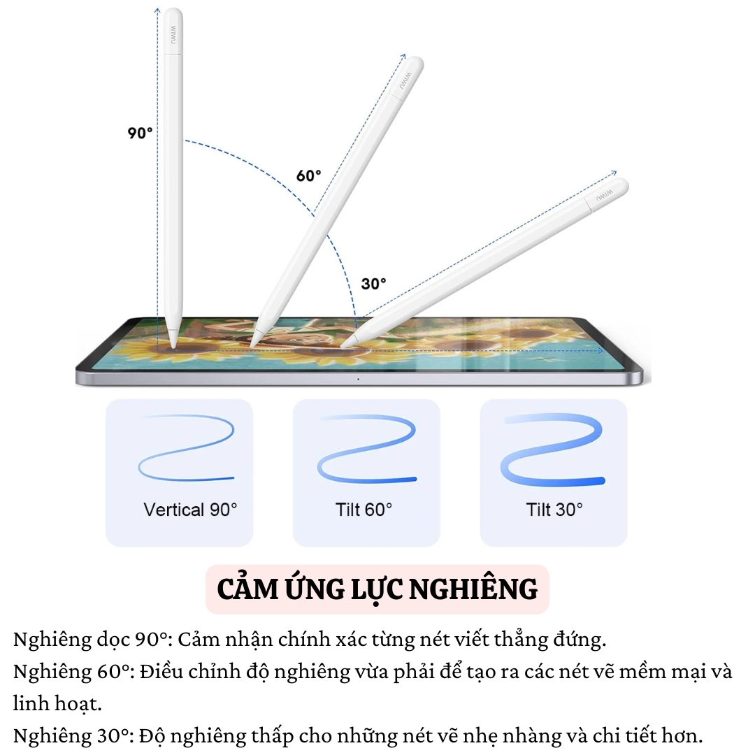 ✨Bút cảm ứng cảm biến nghiêng chống tì tay sạc nam châm WIWU Stylus A01 cho iPad Pro Air Mini đời 2018 trở lên Gen 7 8 9 10 10.9 11 12.9 13 Mini 6 M1 M2 M3 M4 - Hàng nhập khẩu