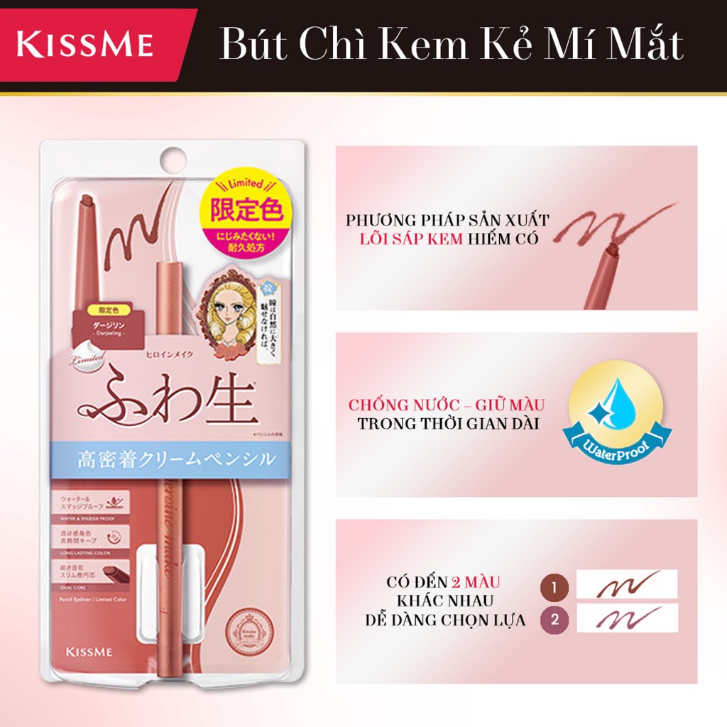 *Công dụng Bút Chì Kem Kẻ Mí Mắt Chống Trôi Nước Lõi Mịn Kissme Heroine Make Cream 02 Màu (1.6G): Sản phẩm giúp kẻ mắt, giúp trang điểm và tạo đường nét cho mắt..