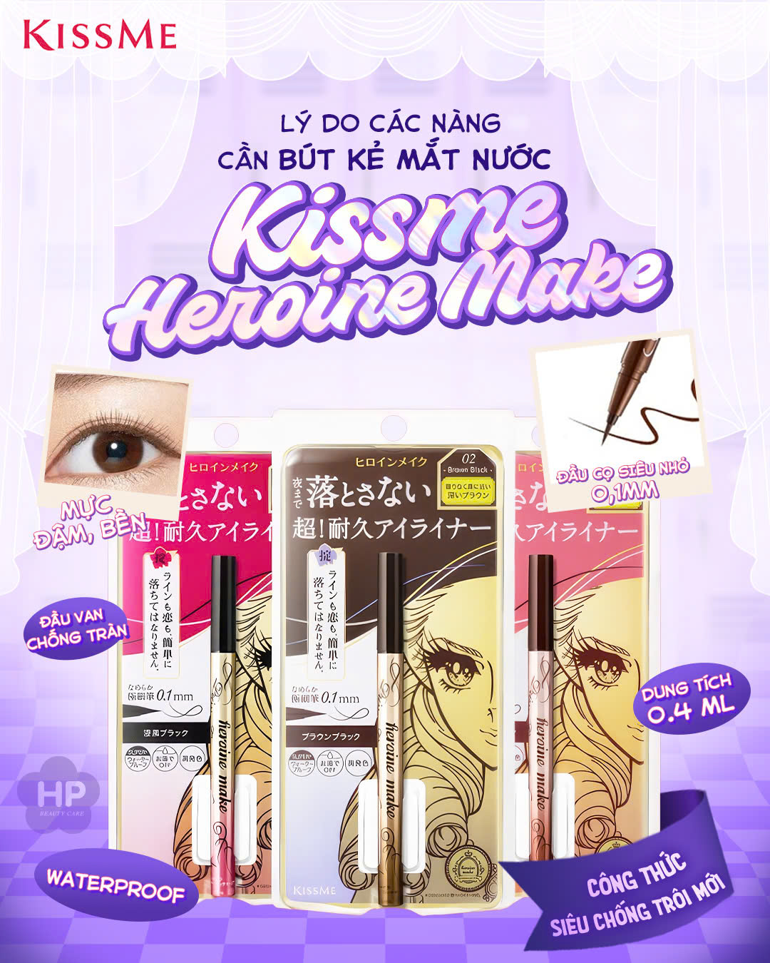 Bút Kẻ Mắt Nước Kissme Heroine Make Smooth Liquid Eyeliner Super Keep Siêu Chống Trôi (Nét Siêu Sắc Mãnh Siêu Mượt) 0.1g Thương hiệu: Kissme Xuất Xứ: Nhật Bản Khối lượng tịnh: 0.1g HSD: 5