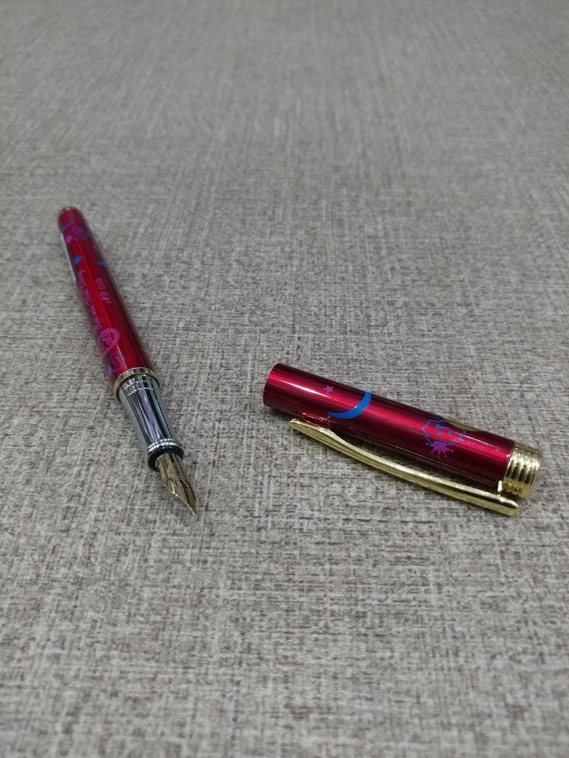 Bút máy có thiết kế vân chống trơn tại điểm cầm bút, thon gọn với độ dài vừa phải với tay các em nhỏ, họa tiết trang trí ít, đơn giản. Vì thiết kế bút nhẹ nên khi rơi sẽ giảm được tổn thương tới ngòi, đây là thiết kế khắc phục được những khó khăn thường gặp khi sử dụng bút máy nói chung.