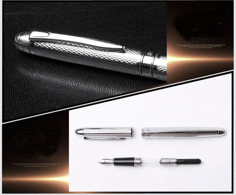 Thân kim loại mạ vàng hoặc bạc vân thân bút uốn lượn xẻ rãnh Chạm khắc tinh tế tỉ mỉ từng chi tết rất sang trọng Ngòi trơn M 0.5 mm, viết êm ái. Thay