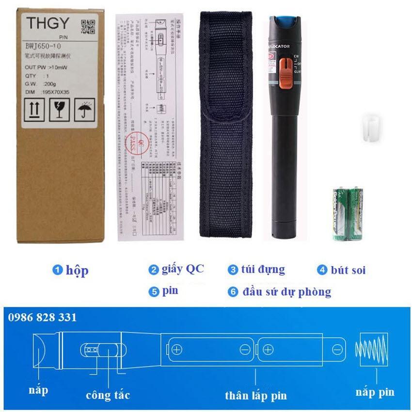 Bút soi sợi quang 10km Bút soi quang 10km là sản phẩm chuyên dụng dùng để phát hiện lỗi và đo thông sợi quang bằng ánh sáng đỏ nhìn thấy. Được thiết kế nhỏ gọn