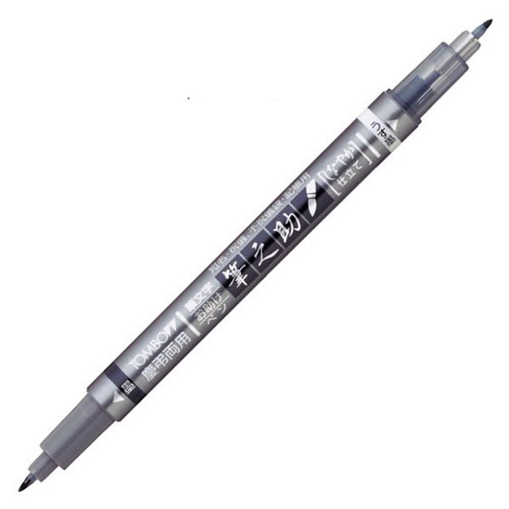 Bút thân xám (dual tip) có 2 đầu brush, 1 đầu mực đen và 1 đầu mực xám, tiện cho việc vẽ bóng cho chữ.