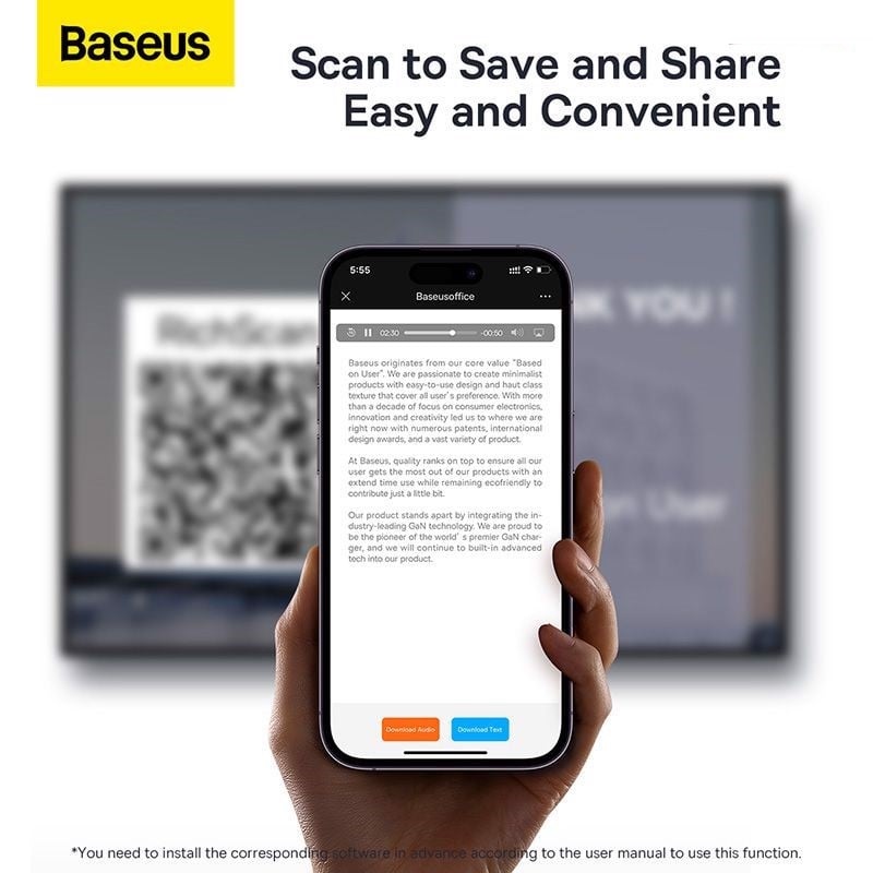 Thông Tin Sản Phẩm Giới Thiệu Bút Trình Chiếu Baseus Orange Dot AI Wireless Presenter WKCD020013, Nhận Diện Giọng Nói & Sử Dụng Màn Hình TV- Hàng Chính Hãng- 100m. 2.4GHz AI USB/Type C Receiver, Wireless Remote Control, Red Laser Pointer/Presenter)- BS-OH085 Bút trình chiếu Baseus Orange Dot AI là một trợ thủ đắc lực không thể thiếu dùng cho các buổi thuyết trình nhờ được trang bị nhiều tính năng tiện dụng, hưu ích và cần thiết như: bút laser (laser poiter), điều hướng slide cho Powerpoint (page up/down), nút mở liên kết, nút tạm dừng khi phát video, nút show/hide... Tính năng Bút Trình Chiếu Baseus Orange Dot AI Wireless Presenter WKCD020013, Nhận Diện Giọng Nói & Sử Dụng Màn Hình TV- Hàng Chính Hãng - 100m. 2.4GHz AI USB/Type C Receiver, Wireless Remote Control, Red Laser Pointer/Presenter)- BS-OH085 Sản phẩm sử dụng kết nối không dây RF2.4GHz, receiver sử dụng cả hai cổng kết nối là USB và Type C có thể kết nối được nhiều thiết bị khác nhau từ Laptop, Mac-book cho đến Smart-phone và Tablet ... với khoảng cách lên đến 100m. Receiver được trang bị nam châm và có thiết kế thông minh có thể gắn được vào bên trong bút tránh thất lạc. AI thông minh nhận diện giọng nói Công nghệ IFLYTEK A.I tự nhận diện gióng nói thành văn bản, cho phép bạn lưu bài phát biểu của mình rõ ràng hơn với tính năng tự động tạo các ghi chú bài thuyết trình hoàn chỉnh. Ghi âm và phiên âm cùng một lúc Hỗ trợ dịch giọng nói IFLYTEK với việc tạo phụ đề tiếng Trung-Anh đồng bộ để giao tiếp hiệu quả hơn. Quét QR và lưu chia sẽ thuận tiện hơn Tự động tạo mã QR sau khi ghi, quét để nhận và chia sẽ toàn bộ bản ghi bất cứ lúc nào, không cần phải xuất file. Chế độ Lazer kép kỹ thuật số Baseus Orange Dot AI trang bị lazer kép với cường độ lazer mạnh hơn những bút trình chiếu thông thường giúp bạn sử dụng trên nhiều thiết bị như : máy chiếu, màn hình LCD, màn hình Led phù hợp cho nhiều thiết bị chiếu hiện nay. Điều khiển từ xa cho chuột Với tính năng điều khiển tự xa chuột của bạn một cách thông mình mà không cần hỗ trợ từ một bạn khác để điều khiển các tác vụ. Đây được xem là cải tiến lớn nhất của Baseus trang bị lên bút trình chiếu Baseus Orange Dot AI. Điều khiển phóng to, nhỏ giúp người dùng trình bày rõ ràng, trực quan không bỏ sót nội dung nào.  Được trang bị chip xử lý tốc độ cao, tiết kiệm điện, cho thời gian phản hồi các thao tác nút cực nhanh. Chỉ cần kết nối và sử dụng, không cần cài đặt thêm các phần mềm hỗ trợ, tương thích với các hệ điều hành Windows, Mac OS, Android ...  Phạm vị chiếu lazer tối đa lên tới 100m, phạm vi điều khiển 50m. Lưu ý: Để sử dụng các chức năng kính lúp/ thu phóng/ con trỏ dưới định dạng laser trên bút, quý khách vui lòng tải app về máy. Hướng dẫn tải app: -Nhấn giữ 2 nút page up/ down cho đến khi hộp thoại trang web tải app xuất hiện -Chọn app tương ứng với thiết bị và thực hiện download -Khi app đã được tải về, quý khách tiến hành cài đặt app -Sau khi cài đặt xong, quý khách có thể thực hiện các thao tác như thu phóng/ kính lúp/ con trỏ dưới định dạng laser *Nhấn đúp 2 lần nút Mouse Control Button để thực hiện chuyển đổi giữa các thao tác. Bút Trình Chiếu Baseus Orange Dot AI Wireless Presenter – WKCD020013