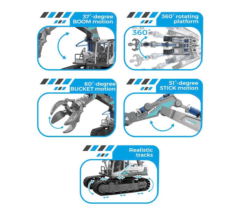 Mô hình máy xúc kim loại điều khiển từ xa 678-8080E – 15 kênh, sóng 2.4G, kích thước lớn Trải nghiệm điều khiển máy móc công trình như thật với máy xúc điều khiển từ