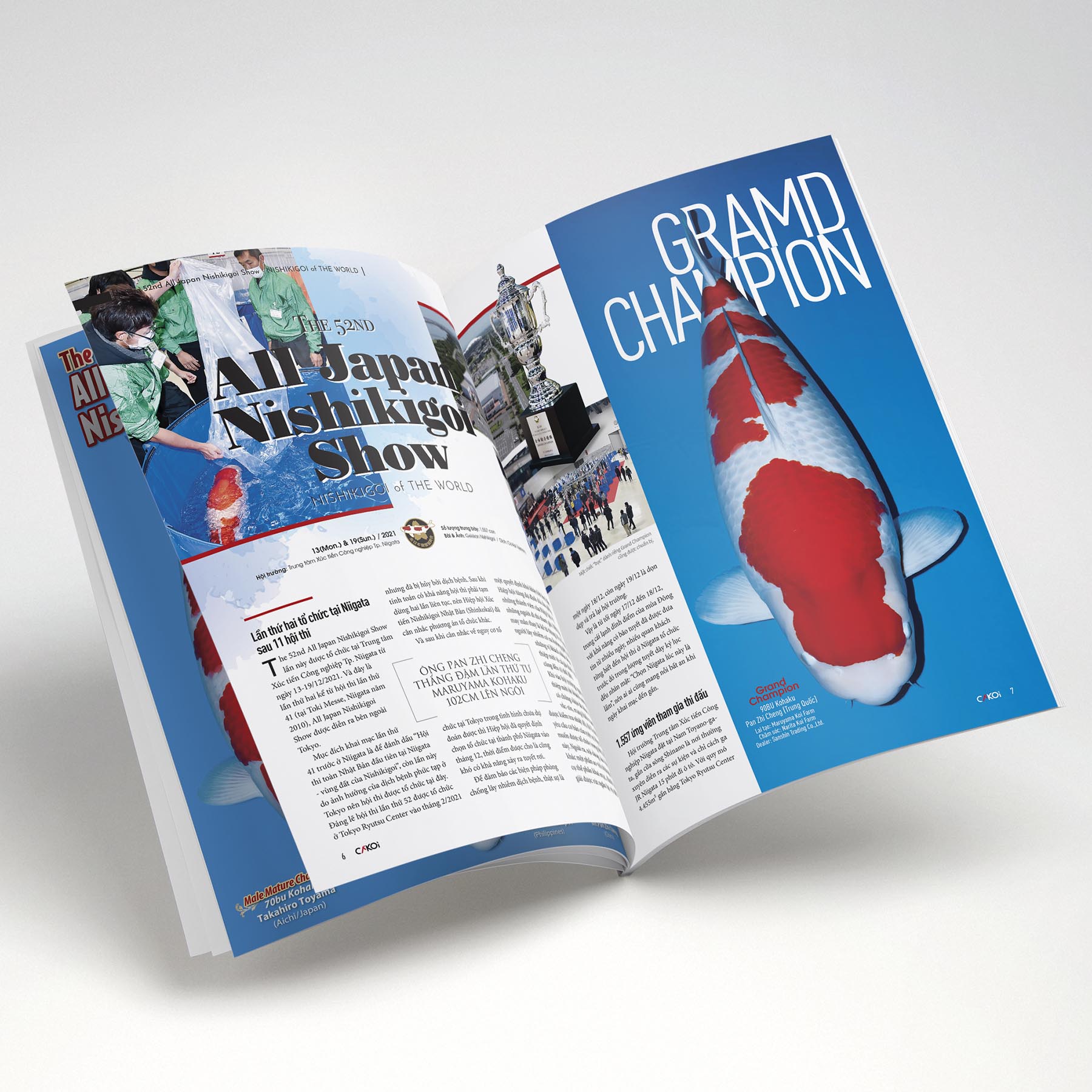 Cá Koi Vietnam đã trở lại với diện mạo HOÀN TOÀN MỚI và POSTER TẶNG KÈM trong mỗi cuốn! Poster dạng bấm kèm, bạn chỉ cần rứt trang giữa ra là có ngay poster Grand Champ của All JP Koi Show lần 52.