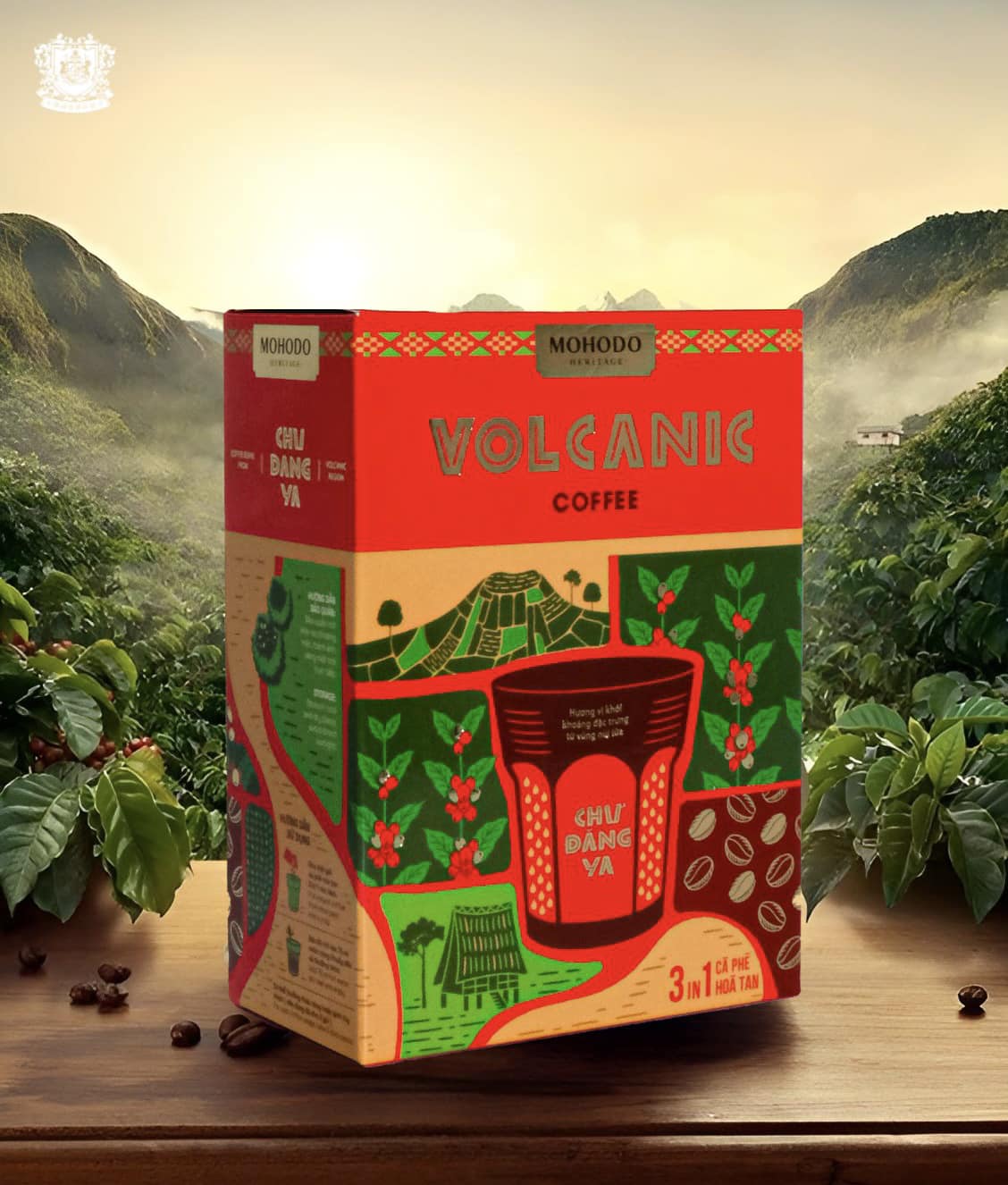 ✨Cà Phê Mohodo Volcanic Coffee Instant 3in1 Nguyên Chất Đậm Vị Từ Núi Lửa Chư Đăng Ya 108g - Hộp giấy