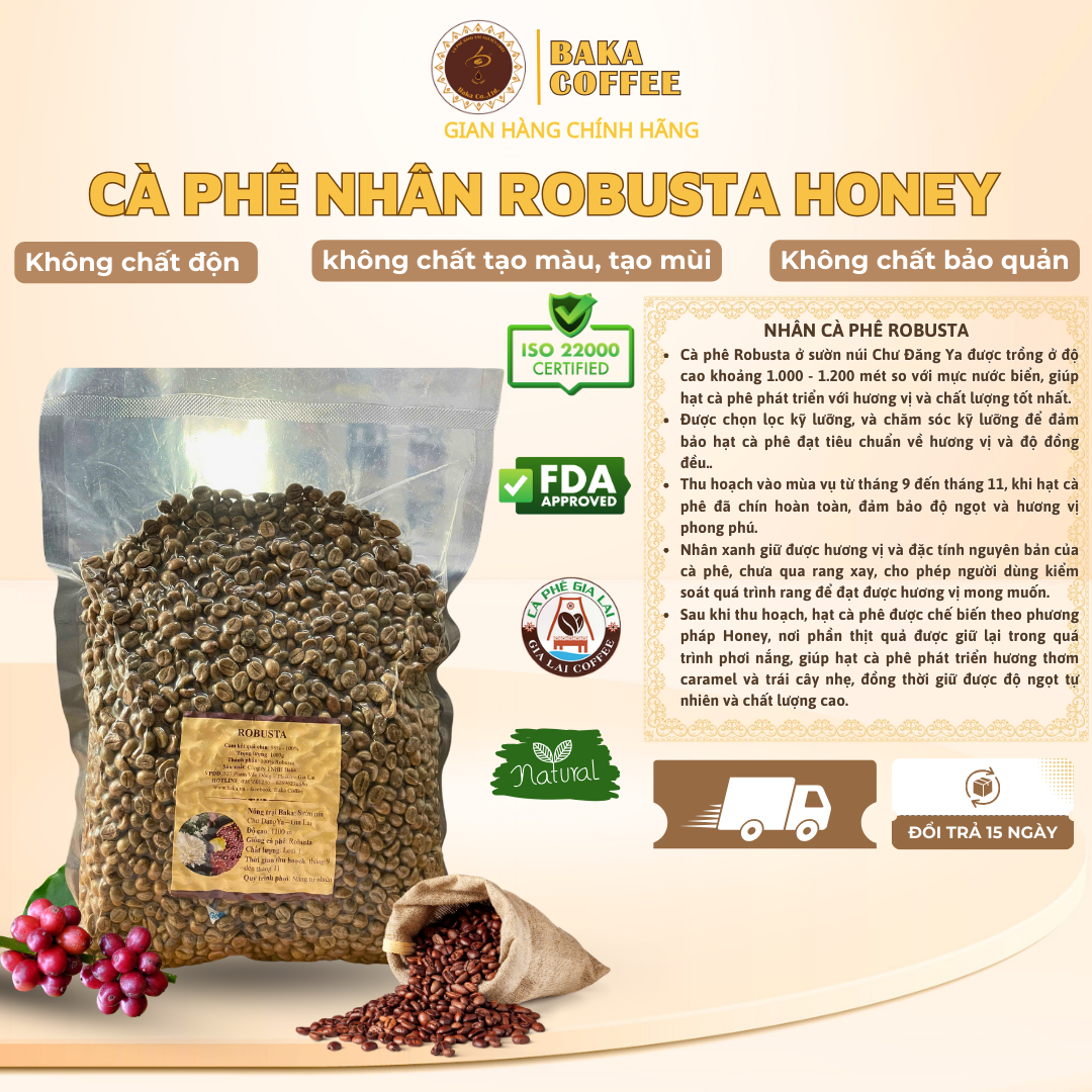 Cà phê nhân xanh ROBUSTA NATURAL B'Lao Farm cafe chưa rang sơ chế natural cao cấp tỷ lệ chín cao túi 1kg 1.THÔNG TIN SẢN PHẨM: Tên Sản Phẩm: Cà Phê Nhân Xanh