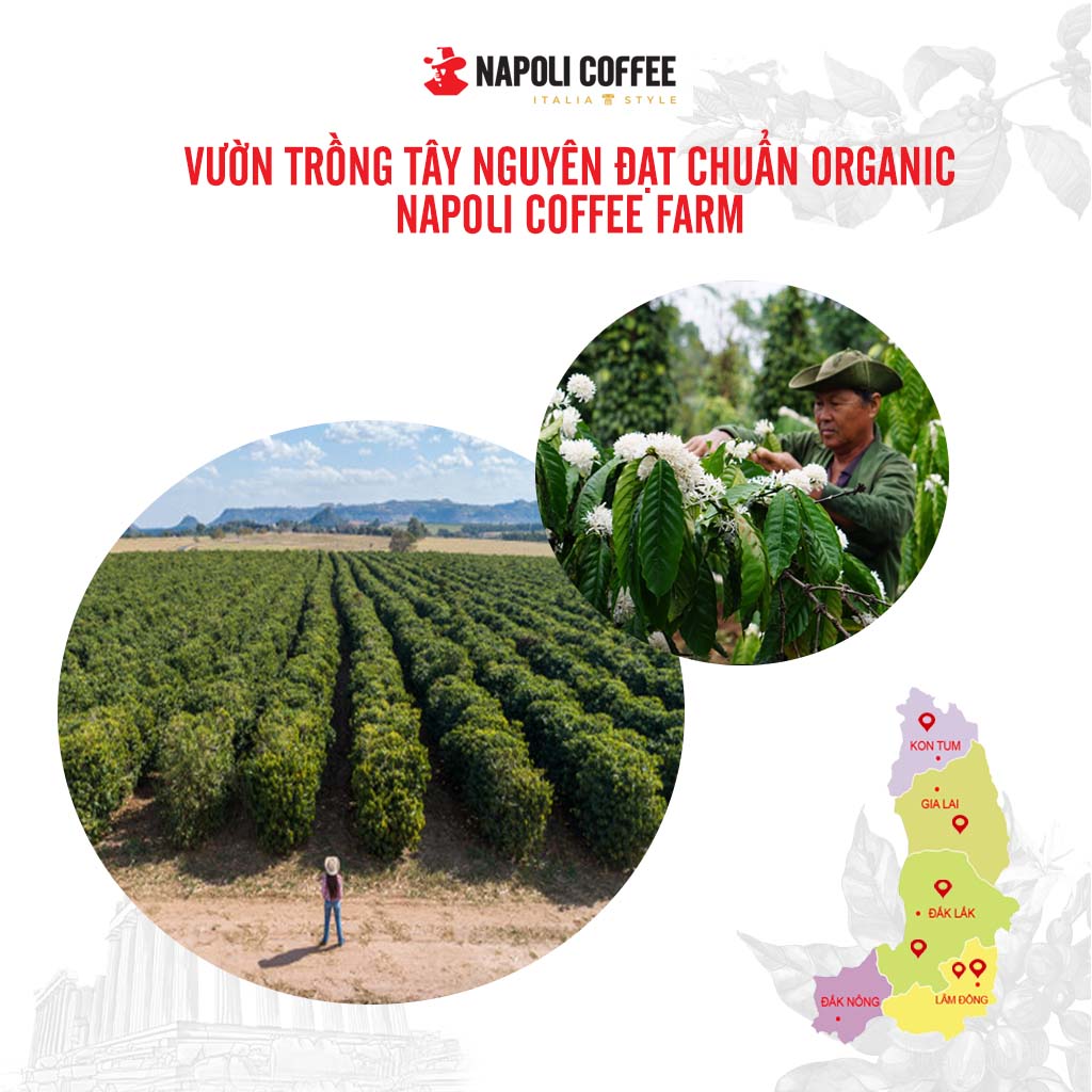 - Cà phê Arabica và Robusta trong gói cà phê hoà tan 3in1 được thu hoạch từ Tây Nguyên cho mùi vị riêng biệt • Bạn nên dùng Napoli cà phê hoà tan 3in1: