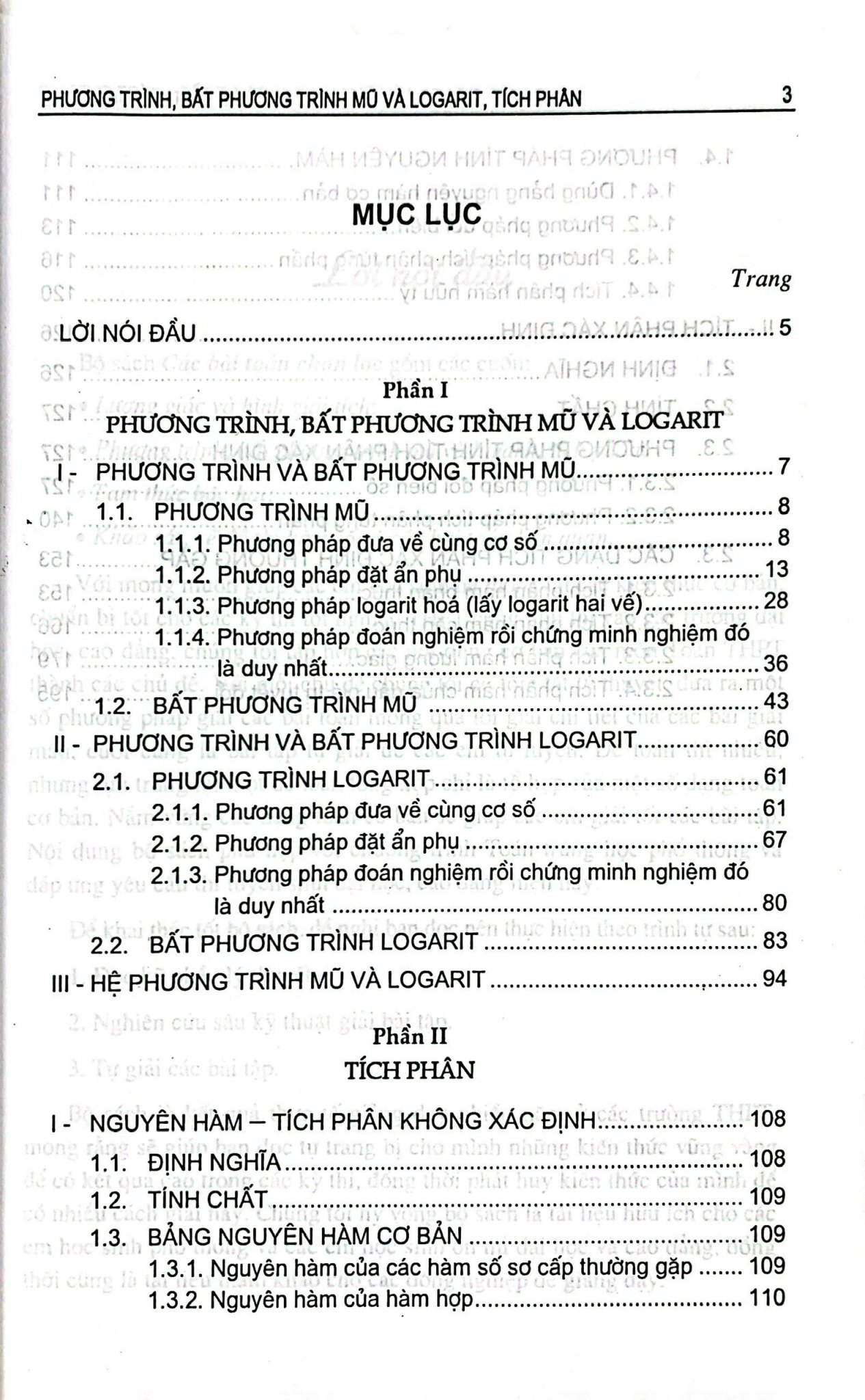 Lượng giác và hình giải tích, mũ và loearit, tích phân: BNH Phương trình, bất phương trình mũ và logarit, tích phân;