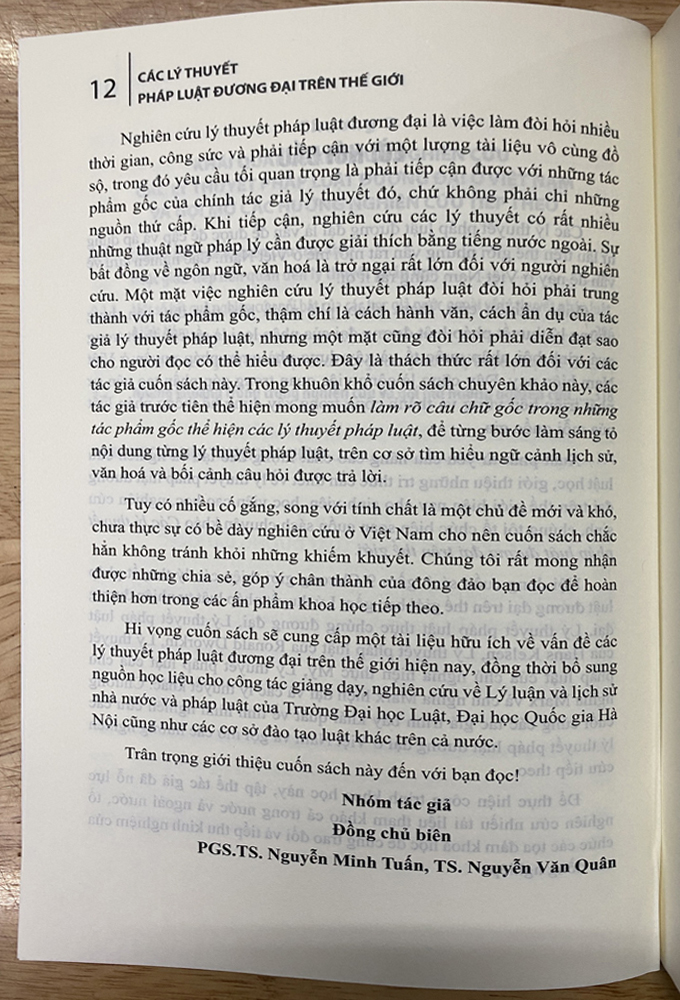 Xuất phát từ yêu cầu nâng cao chất lượng đào tạo và nghiên cứ luật học, giới thiệu những tri thức cần thiết về lý thuyết pháp luật đương đại trên thế giới hiện nay cho sinh viên, học viên cao học, nghiên cứu Chúng tôi tổ chức biên soạn cuốn sách chuyên khảo "Các lý thuyết pháp luật đương đại trên thế giới" Hi vọng cuốn sách sẽ là tài liệu hữu ích với các bạn sinh viên, học viên cao học, nghiên cứu sinh và những ai quan tâm nghiên cứu luật họ