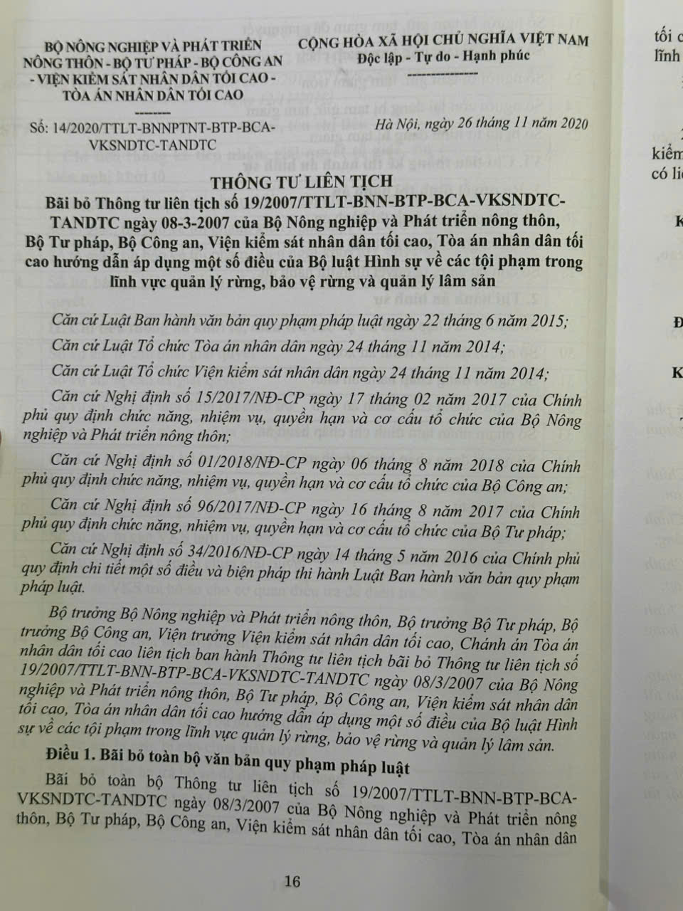 Phần thứ nhất: Các Thông tư liên tịch của Tòa án nhân dân tối cao – Viện Kiểm sát nhân dân tối cao – Bộ Tư pháp – Bộ Công an – Bộ Quốc phòng về hình sự