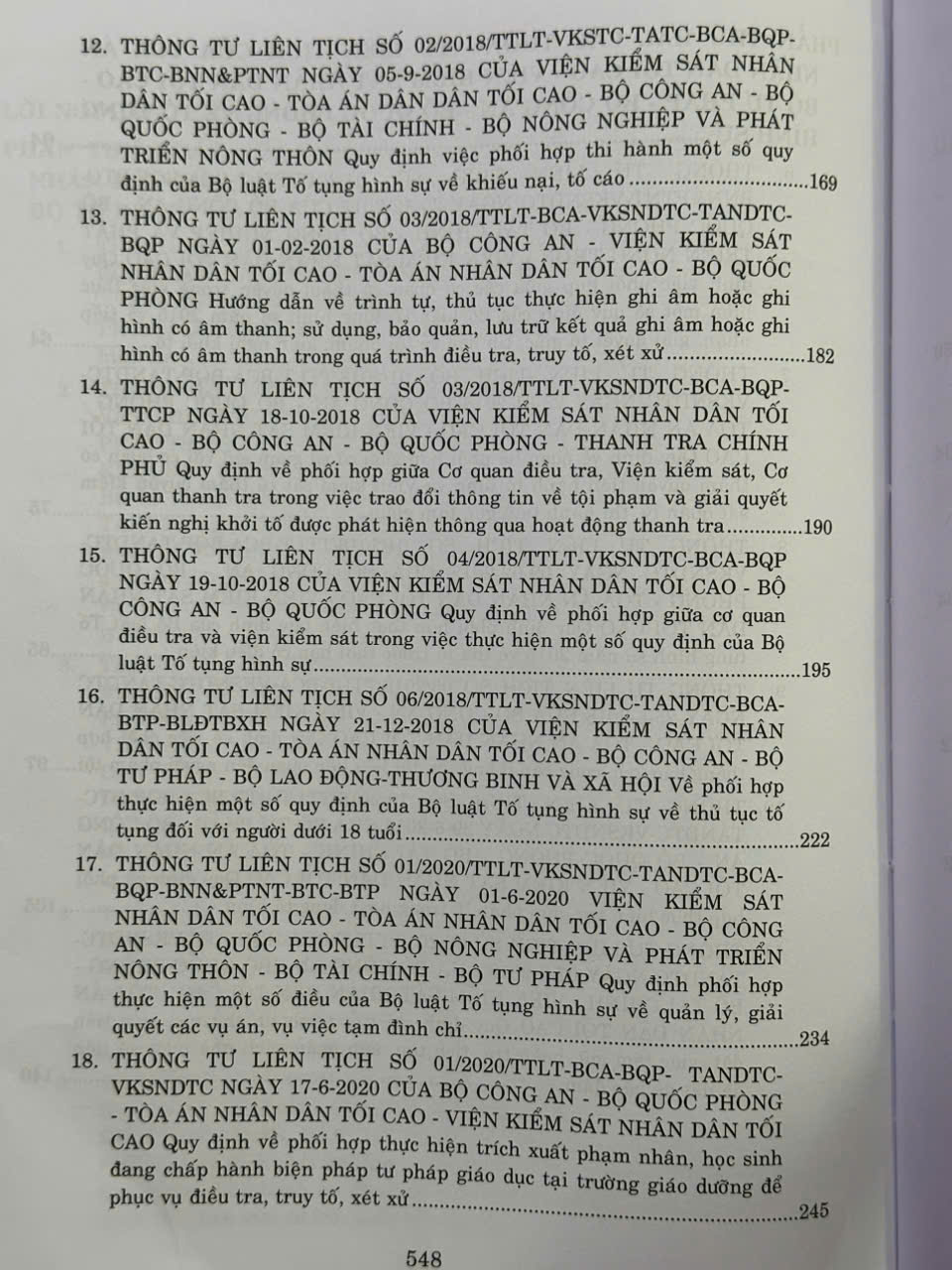 Phần thứ hai: Các Thông tư liên tịch của Tòa án nhân dân tối cao – Viện Kiểm sát nhân dân tối cao – Bộ Tư pháp – Bộ Công an – Bộ Quốc phòng về tố tụng hình sự