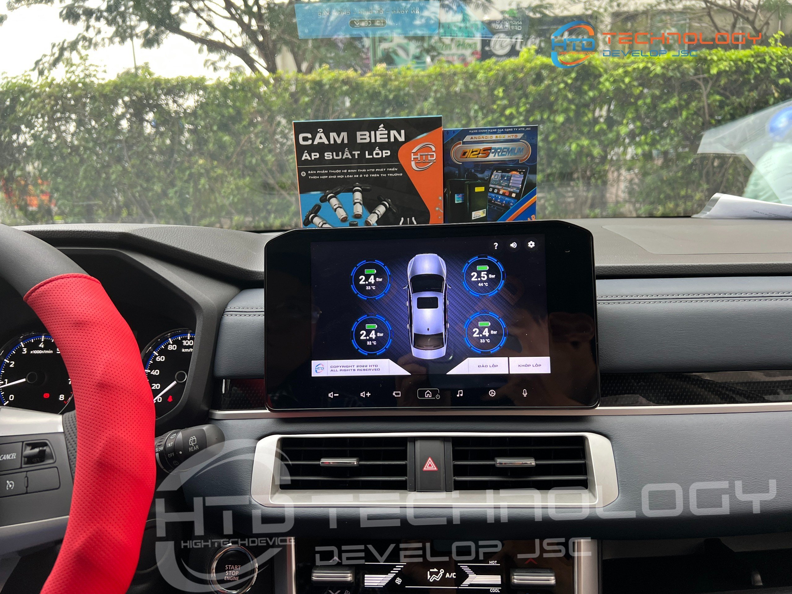 Hiển thị đồng thời áp suất và nhiệt độ 4 lốp trên màn hình nguyên bản qua androidbox cho ô tô hoặc màn hình android