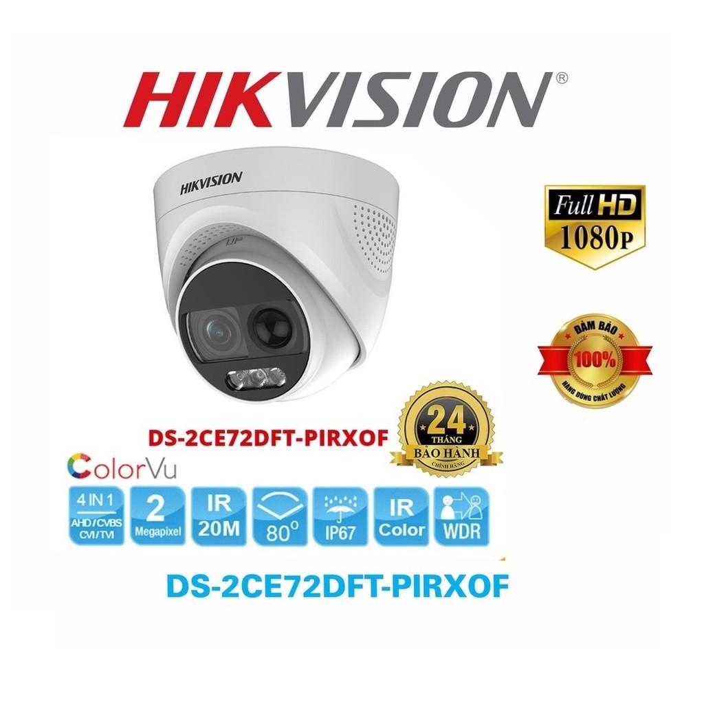 ✨CAMERA HD-TVI COLORVU HIKVISION DS-2CE72DF3T-PIRXOS 2Mp CÓ MÀU ĐÊM và Đèn Báo Động - Hàng chính hãng