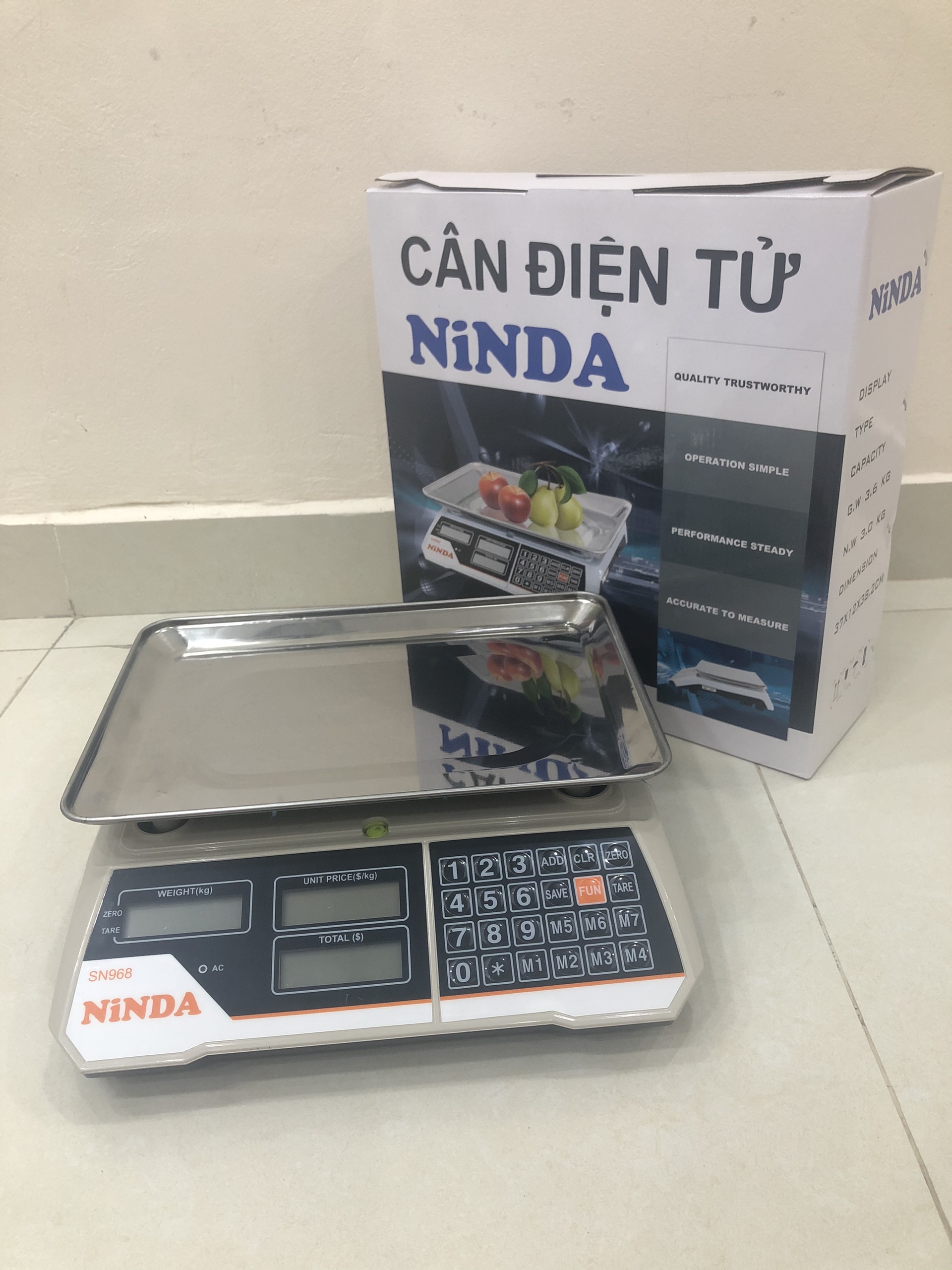 Cân điện tử NiNDA SN968 có hiển thị giá bán, trọng lượng, thành tiền