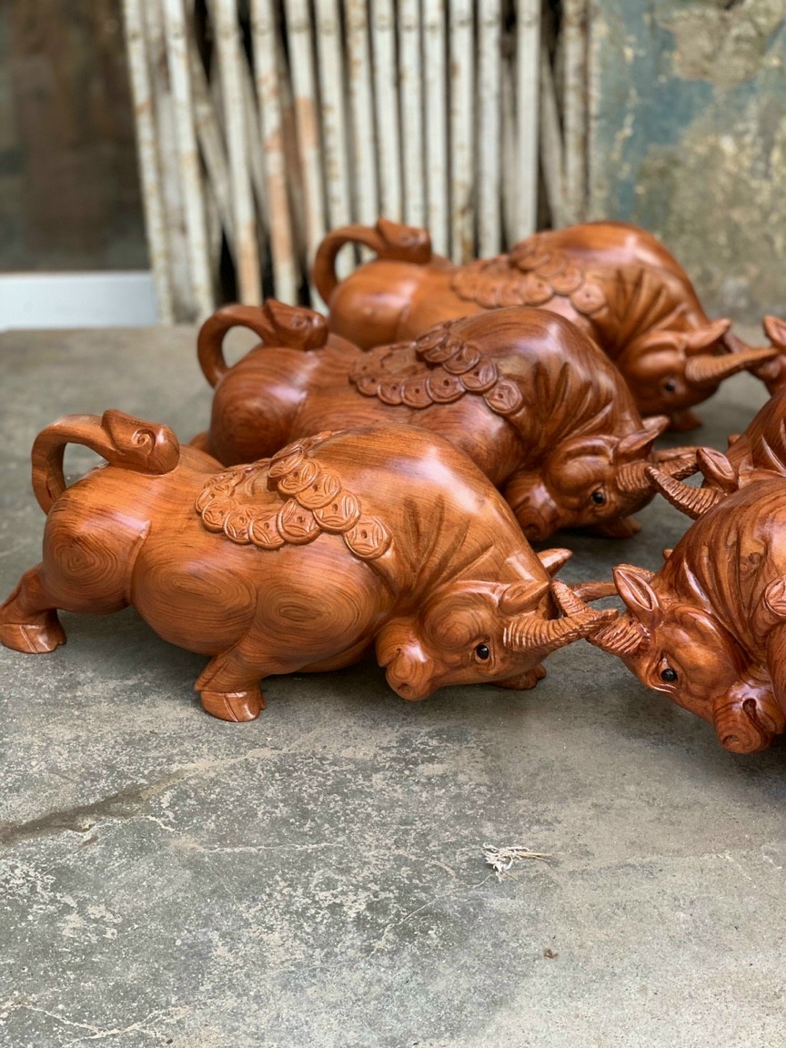 Mua tại Tiktok_ Cặp bò tót được làm bằng chất liệu gỗ hương đá tự nhiên 100%