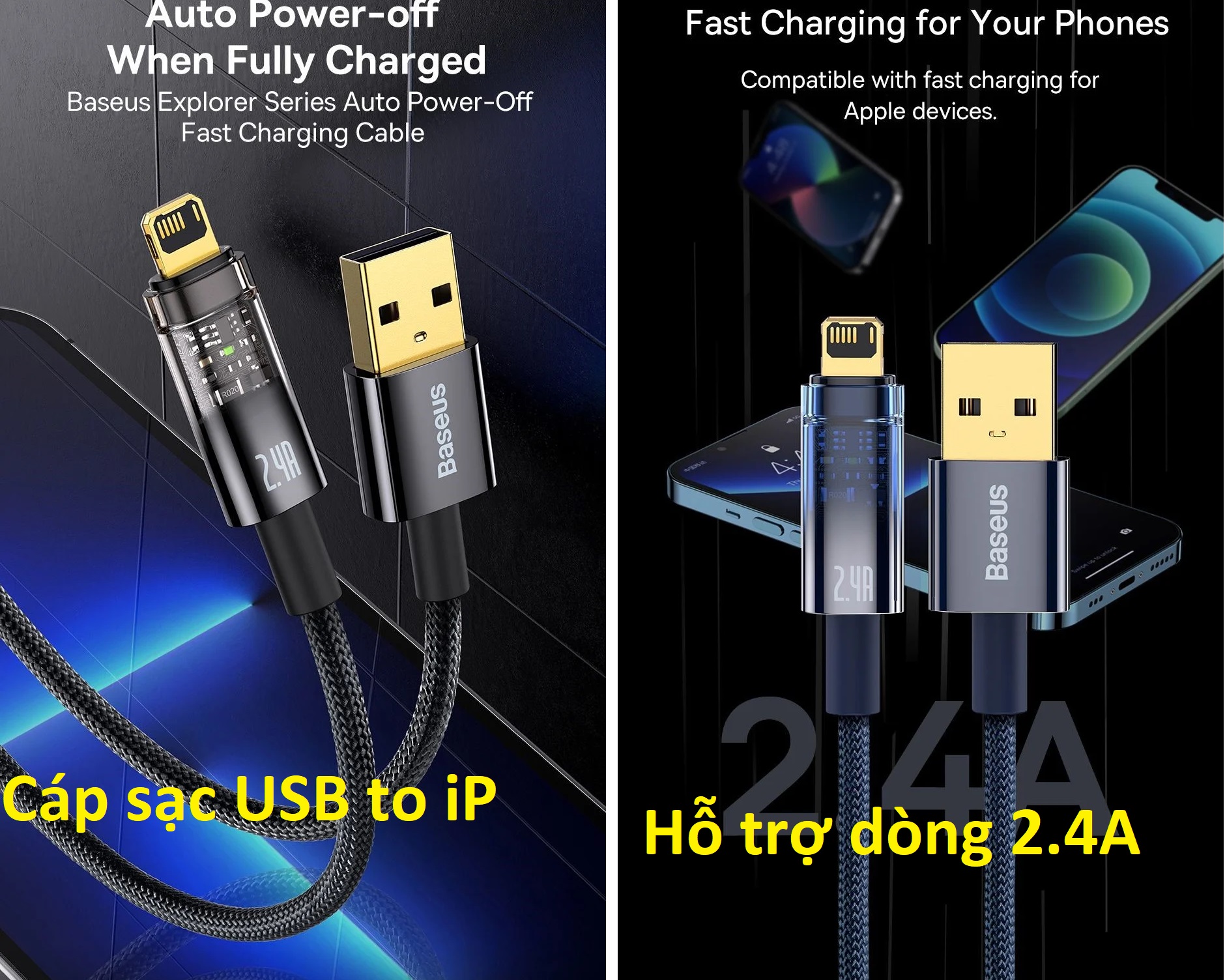 ✨Cáp sạc dành cho iPhone 2.4A tự ngắt khi đầy Baseus Explorer Series CATS000401- Hàng chính hãng