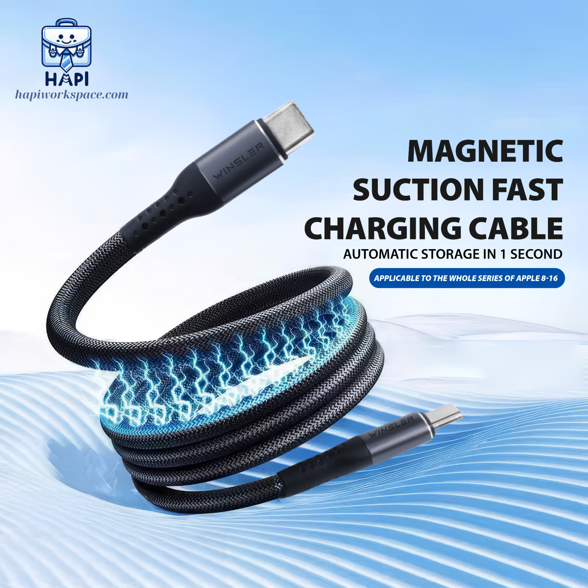 ✨Cáp sạc hàng chính hãng Winsler C to C 100W MC: Tích hợp nam châm cuộn gọn, sạc nhanh laptop, điện thoại