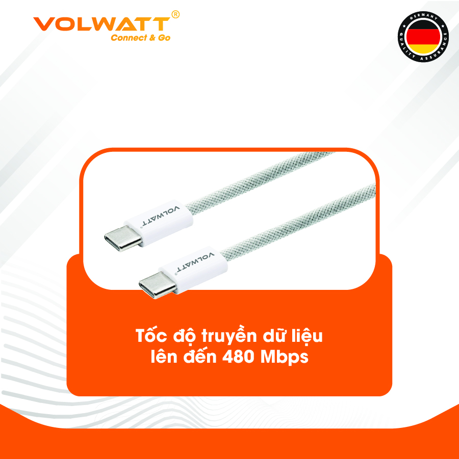 Cáp sạc siêu nhanh & truyền dữ liệu tốc độ cao Volwatt GE-038-CC – Giải pháp tối ưu cho nhu cầu sạc nhanh 60W và truyền dữ liệu ổn định cho nhiều thiết bị. 1.