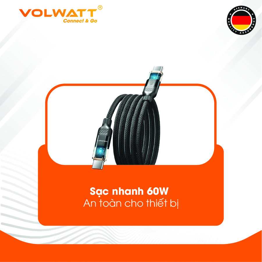 Cáp sạc nhanh Volwatt GE-A35-CL – Chuẩn PD 27W, có LED hiển thị công suất Là lựa chọn tối ưu cho người dùng cần tốc độ sạc nhanh, an toàn và tiện lợi. Sản phẩm