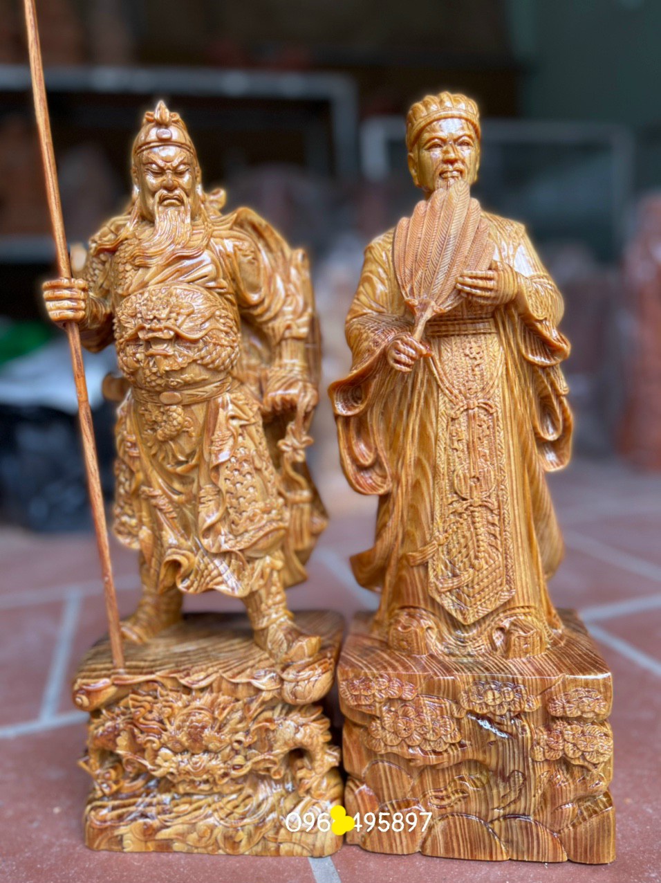 _Tượng quan công và gia cát lượng được làm bằng chất liệu gỗ hương đá tự nhiên 100% _ Kích thước cao 30ngang 13 sâu 9cm _ Tượng khổng minh và quan công cặp văn