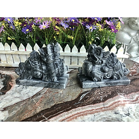 ✨Cặp Tỳ Hưu phong thủy đá cẩm thạch vân đen có đế - Dài 15 cm