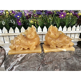 Mua tại TiktokHợp mệnh Thổ - Kim Chất liệu: Đá ngọc hoàng long Kích thước: Dài 13cm x Rộng 6cm x Cao 11cm Khối lượng: 2,1 kg/ cặp