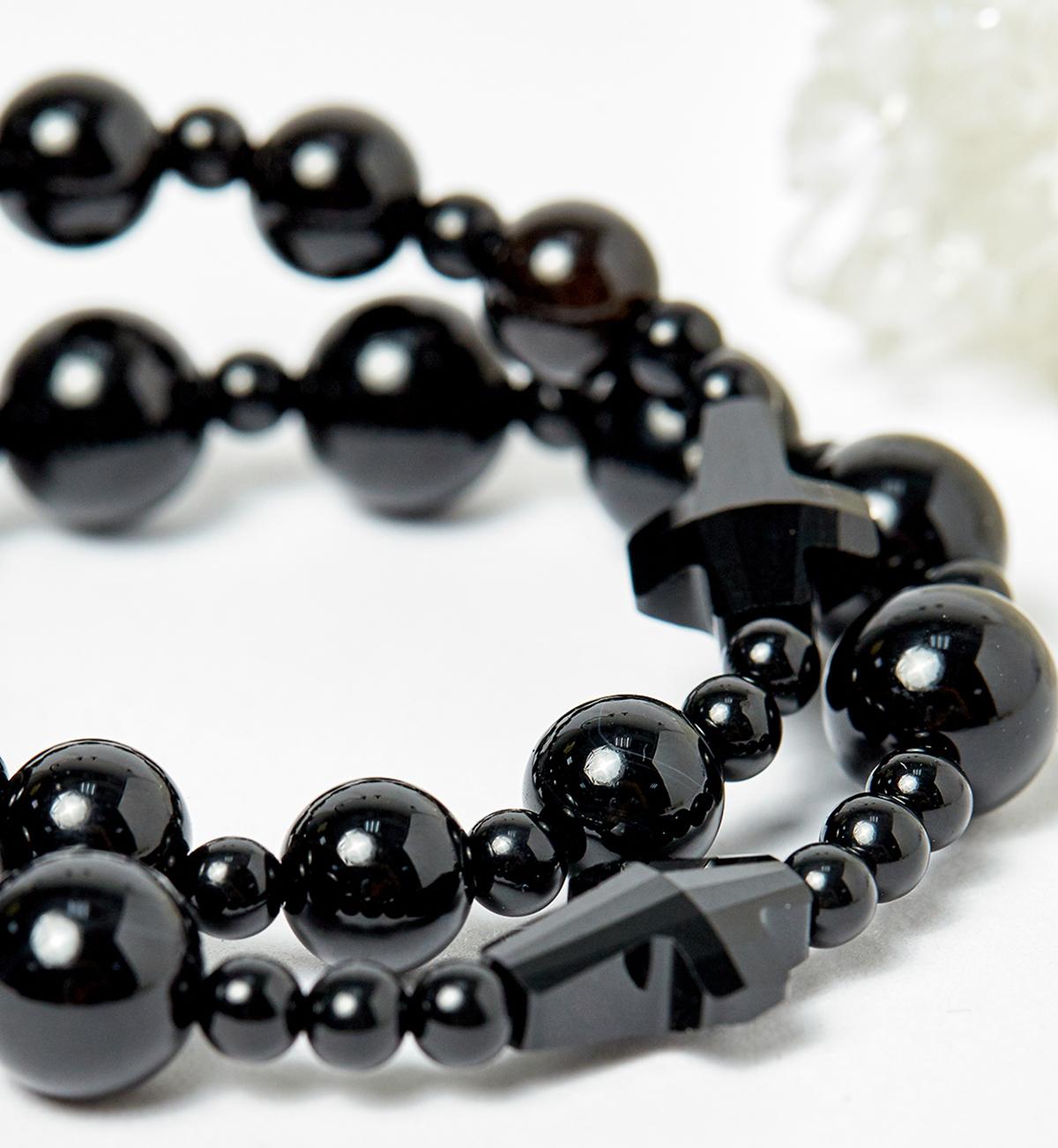 Vòng Mân Côi Đá Thạch Anh Tóc Đen mix Thánh Gía Pha Lê Đen