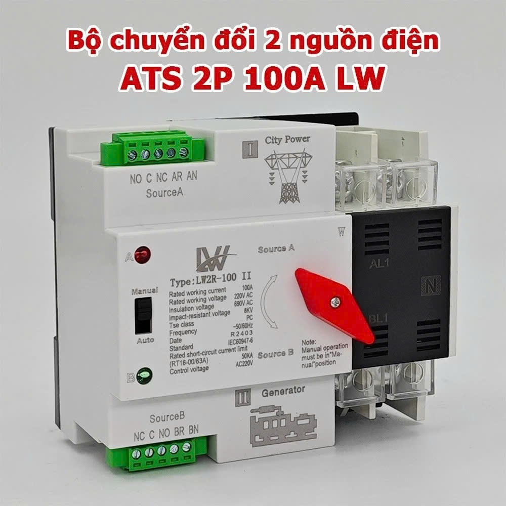 ✨Cầu Dao Chuyển Nguồn Tự Động – 100A Công Suất Lớn, Không Mất Điện Khi Chuyển Nguồn Không Bị Mất Điện