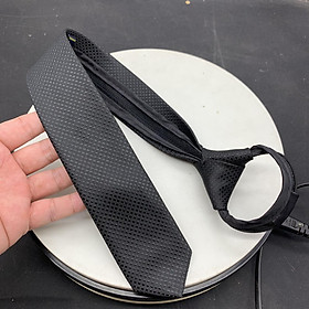 Cà vạt nam 8cm đen kẻ tăm chìm Cavat trung niên GiangPKC Chất liệu vải kẻ tăm - hàng đây 3 lớp . Dây kéo thắt sẵn tiện lợi