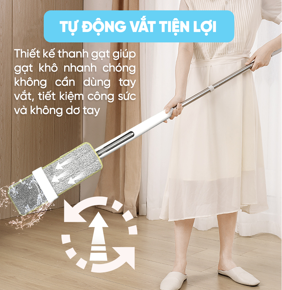 • Việc lau nhà trở nên dễ dàng hơn, không cần cúi lưng, không cần vắt bằng tay
