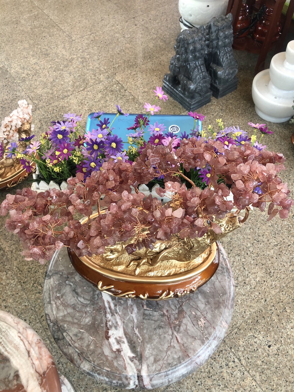 Tượng Phong Thủy Cây Đào Thạch Anh Hồng tự nhiên 18 quả to đẹp Kích thước cao 55cm x ngang 42cm x sâu 20cm Anh Chị trưng phòng khách nhà, công ty biểu tượng sự