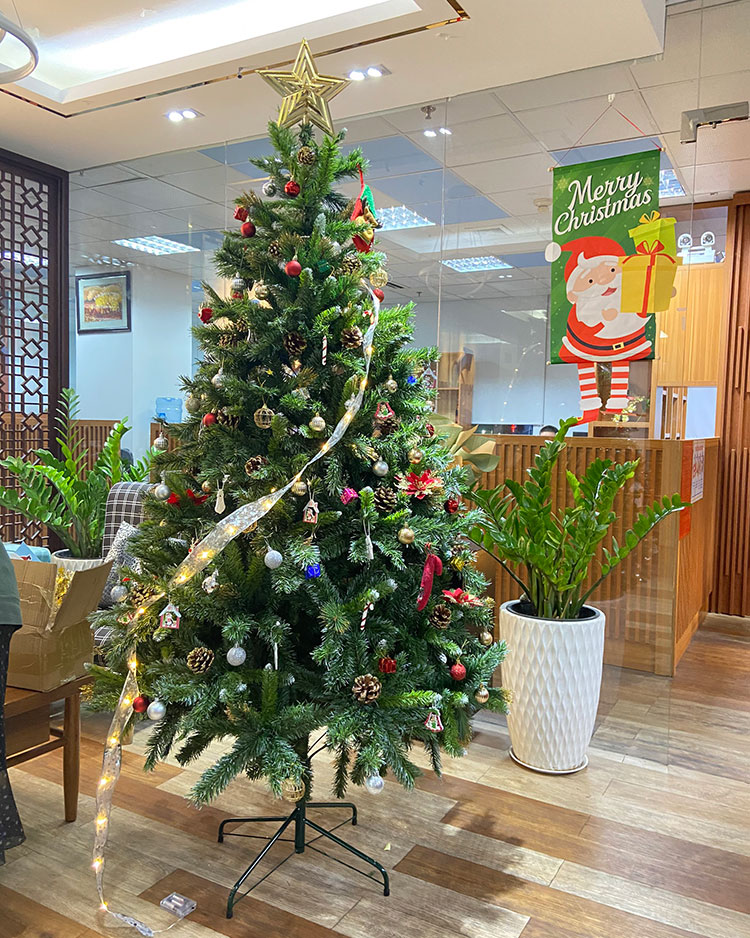 Với cây thông đẹp như vậy quý khách Chỉ cần thêm 1 hộp châu (quả cầu) khoảng 30 chi tiết, thêm ít bộ đèn nháy là có một cây thông lung linh, cho không khí Giáng Sinh tràn ngập ngôi nhà