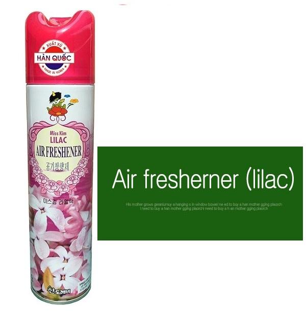 Công dụng : Sản phẩm xuất xứ từ Korea dùng để tạo không khí tươi mát, dễ chịu với hương thơm nhẹ nhàng, dễ bay hơi, không thấm sâu vào đồ vật trong phòng, xe hơi…Thành phần : Chiết xuất từ tinh dầu hoa quả từ thiên nhiên Mùi hương : Jasmin (Hoa nhài), Lilac (Tử đinh hương), Hazelnut (Cà Phê), Lavender (Hoa oải hương), Hương bạc hà.Quy cách : Bình dạng xịtKích thước bình : Dài x Rộng x Cao = 5 x 5 x 22,5 cm